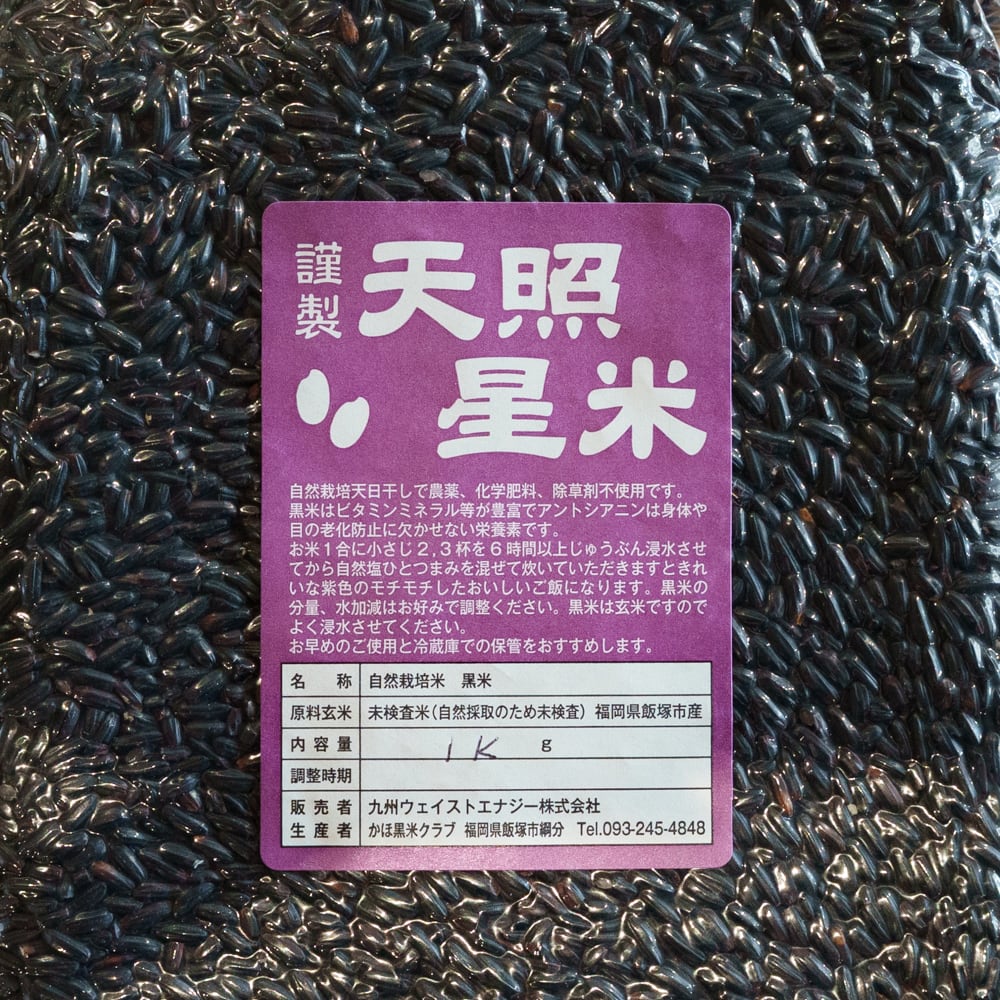・黒米ごはん・・・米1合に小さじ1,2杯混ぜて6時間浸水後に炊いてください。自然塩ひとつまみともち麦を加えるとさらにおいしくなります。